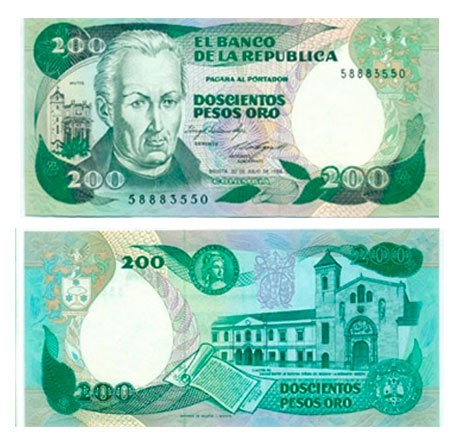 El billete de 200 pesos oro de la época empieza a circular con la imagen del Claustro, de la Capilla de la Bordadita y con la foto del catedrático rosarista José Celestino Mutis.