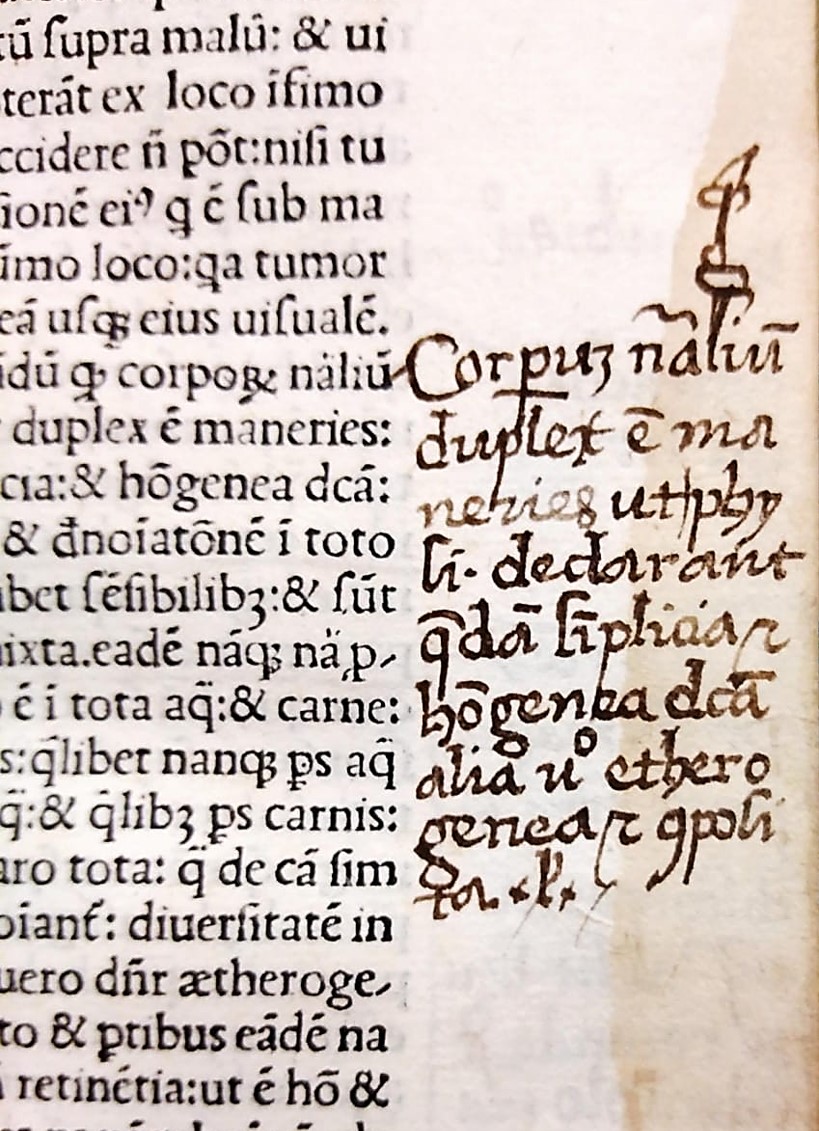 Item, cum aqua sit corpus homogeneum totum cum partibus eiusdem erit rationis. Sed partes aquae (sicut in guttulis & roribus herbarum accidit) rotundam naturaliter appetunt formam: ergo & totum cuius sunt partes.