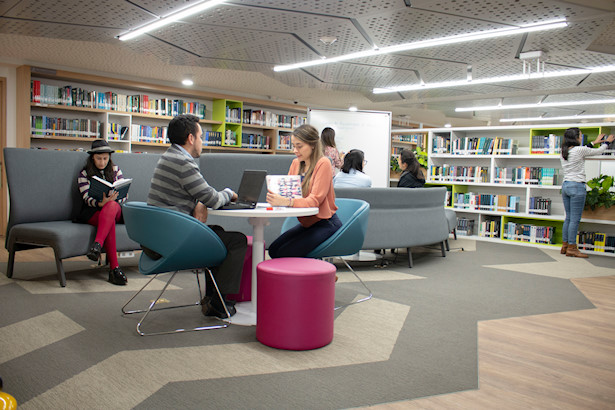 Aprovechando las bondades de las nuevas tecnologías y capacidades del equipo humano, se implementó un nuevo modelo de servicios, permitiendo ofrecer a la comunidad Rosarista una “experiencia memorable” en espacios modernos y flexibles que potencializan el desarrollo de la creatividad, el trabajo individual y colaborativo.