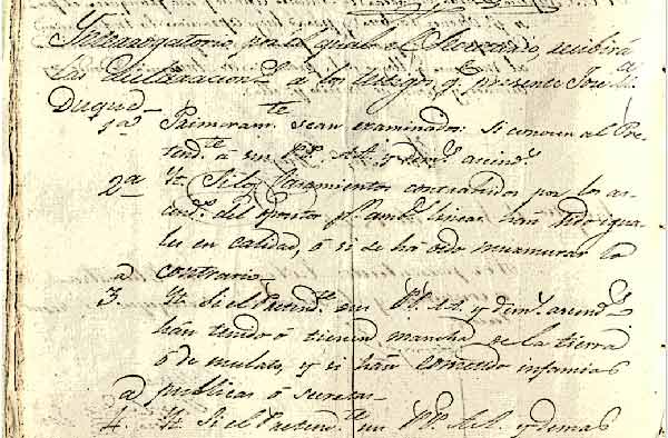Los aspirantes debían demostrar su limpieza de sangre y condición de nobleza a través de un cuestionario sobre sus “cualidades”. Entre 3 y 6 testigos debían responder al cuestionario ante el secretario