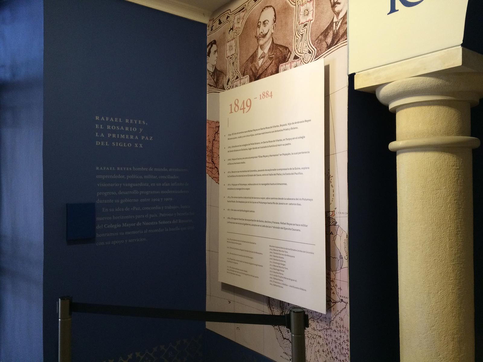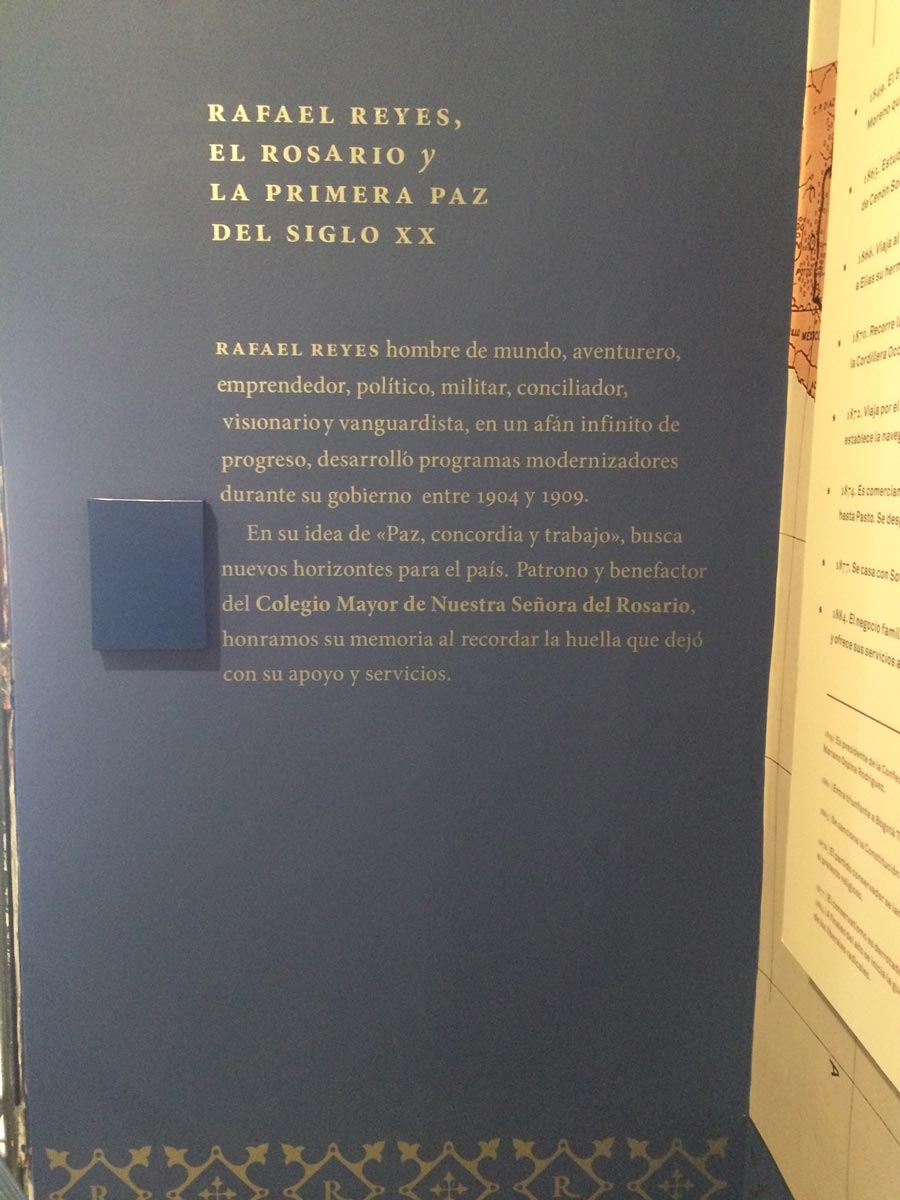 Rafael Reyes, hombre de mundo, aventurero, emprendedor, político, militar, conciliador, visionario y vanguardista en un afán infinito de progreso, desarrolló programas modernizadores durante su gobierno, entre 1904 y 1909. En su idea de “Paz, concordia y trabajo”, busca nuevos horizontes para el país. Patrono del Colegio Mayor de Nuestra Señora del Rosario, se honró su memoria en una exposición que recordó la huella que dejó en la institución con su apoyo y servicio.