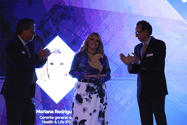 El Premio Halcón Dorado, que simboliza la visión estratégica de los egresados de la Universidad del Rosario, fue para Mariana Rodríguez, fundadora y gerente general de Health & Life IPS. Rodríguez es egresada de la especialización en gerencia integral de servicios de salud y afirma que su paso por este programa fue esencial para posicionar su empresa como líder en gestión en salud para pacientes en condición crónica, con 22 sedes a nivel nacional y una red propia de equipos para atención integral intramural y domiciliaria, como apoyo fundamental en lo administrativo para muchas Empresas Administradoras de Beneficios en Salud.