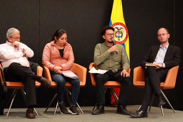 Laura Camila Barrios, directora de la Maestría en Conflicto, Memoria y Paz de la Universidad del Rosario, moderó el panel donde participaron Betsy Ruíz, lideresa del Espacio Territorial de Reincorporación de Aguabonita, La Motañita Caquetá; Paola Bolaños, lideresa Zona de Reserva Campesina de Cabrera, Sumapaz; Stefan Peters, director de Capaz; Gabriel Jhon Tobón, profesor de la Facultad de Estudios Ambientales y Rurales de la Pontificia Universidad Javeriana; y Jairo Baquero, profesor de la Escuela de Ciencias Humanas de la Universidad del Rosario.