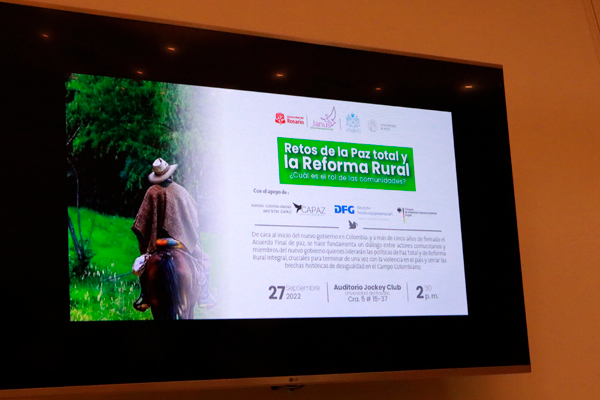El conversatorio fue convocado por las universidades del Rosario, Javeriana y Leipzig en Alemania, en alianza con el Instituto Colombo-alemán para La Paz (CAPAZ), la Fundación Alemana para la Investigación Científica (DFG) y la Embajada Alemana en Colombia, con el objetivo de establecer un puente de diálogo entre el gobierno nacional, la academia y líderes comunitarios, de cara a los retos de la paz y la necesaria transformación del campo desde una reforma rural integral en Colombia.