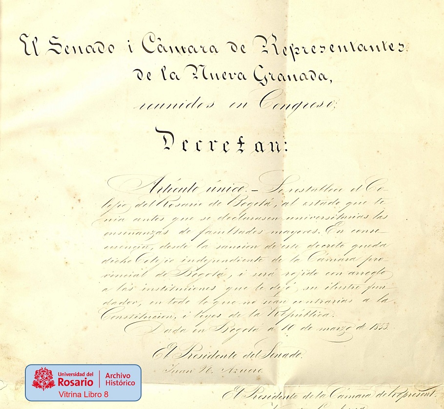 La relación entre el Estado y el Colegio del Rosario en el siglo XIX fue compleja. Aquí les presentamos el capítulo correspondiente a la emancipación de 1851.
