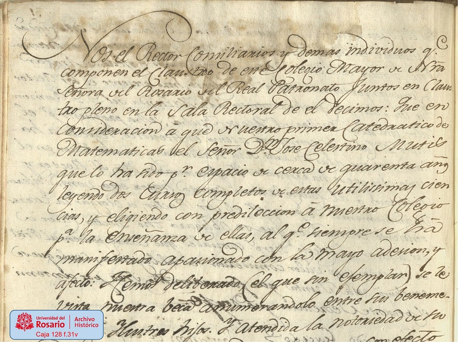 José Celestino Mutis puede ser, después de fray Cristóbal de Torres, el personaje más paradigmático de la Universidad del Rosario, donde recibió los más altos honores.