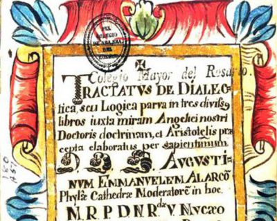 Se trata de un cuaderno con textos de estudio. Agustín Manuel de Alarcón, su autor, fue rector del Colegio Mayor del Rosario y un importante académico de la Nueva Granada, de mediados del siglo XVIII.