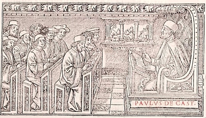 En uno de los libros del Archivo Histórico, tenemos al jurista Pablo de Castro en un grabado, seguido de su biografía.