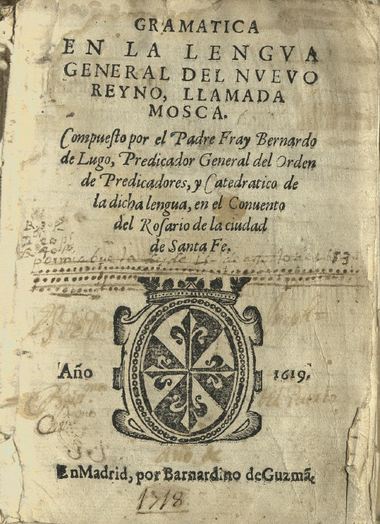 Las dos gramáticas chibchas existentes en el Archivo, una por Lugo y otra por Uricoechea, dan cuenta de la vida de dicha lengua.